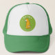 Casquette de camionneur avec une illustration et une conception d'un Shiba, se reposant sur un arrière - plan de vert jaunâtre.