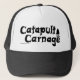 Casquette noir et blanc de boule, comportant le logo pour le carnage de catapulte de présentation horizontale sur microfilm par Justin Swanson et le caractère James.