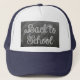 La photo d'un tableau noir avec le message "de nouveau à école" dans la craie blanche est décrite sur ce casquette de camionneur. Portez-vous ou donnez comme cadeau à un professeur, à un étudiant, à un chauffeur et à des plus de bus, à un réglable et à un disponible dans 12 combinaisons de couleurs !