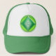 Initial s'assied sur une pile de 4 diamants concentriques (augmentant l'obscurité de presque blanc de plus petit au centre, à vert moyen vers l'extérieur), sur le dessus d'un carré tridimensionnel (vert foncé), le tout sur un orbe 3D (vert clair).