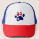 Empreinte de patte de chien de style dessin animé mignon avec drapeau australien. Chapeaux camionneurs personnalisés pour amoureux de les chiens. Tout ce qui est vu est imprimé, aucun gaufrage réel ne sera utilisé dans la fabrication de ce produit. Idée cadeau.
