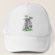 This all white hat features a stylish gray watercolor golf bag filled with clubs, sitting on a patch of green grass. The design includes a simple serif initial monogram placed right on the bag, making it feel like a natural part of the artwork. The letter is shown in a dark gray, almost black, to match the bag’s accents, but you can change it to any color you prefer. A fun and functional accessory for a day of golfing—perfect for birthdays, Christmas, Mother’s Day, or any special occasion. You can also change the hat color to suit your style.