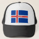 Drapeau de l'Islande. Le drapeau de l'Islande (islandais : íslenski fáninn) a été officiellement décrit dans la loi no 34, publiée le 17 juin 1944, jour où l'Islande est devenue une république. La loi s'intitule "La loi du drapeau national des Islandais et les armoiries de l'État" et décrit le drapeau islandais comme suit : Le drapeau national civil des Islandais est bleu comme le ciel avec une croix blanche-neige, et une croix rouge-feu à l'intérieur de la croix blanche.
