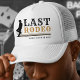 Celebrate the groom's last ride with this western, last rodeo bachelor party hat. Featuring cool saloon styled text, and a brown, black and white color palette, it's a fun choice for a guy's night out or weekend trip. Personalize it with the groom's name and event details for a custom keepsake!