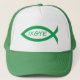 Dans les cercles chrétiens, le symbole du poisson est souvent utilisé pour symboliser le Sauveur Jésus-Christ. La langue dominante de l'Église primitive était le grec, et en grec l'expression "Jésus Christ, Fils de Dieu, Sauveur" a produit l'acronyme ICHTHYS, le mot grec pour poisson. Un poème chrétien du deuxième siècle écrit le mot avec les premières lettres de chaque ligne. Portez ce casquette pour témoigner de votre ferme foi en Jésus-Christ, Fils de Dieu, Sauveur. Le casquette a un poisson vert avec l'acronyme IXOYE à l'intérieur. Non seulement dans les jours bibliques, mais même maintenant, le vert signifie souvent une nouvelle vie. Une couleur appropriée de notre Seigneur et Sauveur qui a donné une nouvelle vie au croyant en Jésus.
