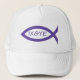 Dans les cercles chrétiens, le symbole du poisson est souvent utilisé pour symboliser le Sauveur Jésus-Christ. La langue dominante de l'Église primitive était le grec, et en grec l'expression "Jésus Christ, Fils de Dieu, Sauveur" a produit l'acronyme ICHTHYS, le mot grec pour poisson. Un poème chrétien du deuxième siècle écrit le mot avec les premières lettres de chaque ligne. Portez ce casquette pour témoigner de votre ferme foi en Jésus-Christ, Fils de Dieu, Sauveur. Le casquette a un poisson violet avec l'acronyme IXOYE à l'intérieur. Dans les jours bibliques, le violet signifiait le pourcentage, une couleur appropriée pour notre Seigneur.