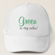 Joli casquette avec design moderne indiquant votre couleur préférée. Le texte de la citation est "Le vert est ma couleur !" dans un joli mélange de typographie verte et noire.