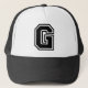 "G" monogrammed trucker hat with black & white letter G initial