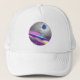 Un magnifique paysage abstrait avec une lune bleue et des collines ondulées colorées et texturées dans les tons violet, violet, bleu, cyan et jaune.