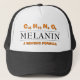 Il s'agit d'un chapeau MELANIN Formula Trucker, conçu avec la formule chimique C18 H10 N2 O4 et avec le libellé MELANIN Une FORMULE GAGNANTE en typographie noire et orange. Ce casquette de base-ball de Melanin ferait un grand cadeau pour des rois et des reines des Caraïbes d'Amérique africaine et mélanine partout dans le monde.