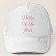 Casquette de baseball de style camionneur personnalisé de couleur blanche avec "Mother Of The Bride" en lettrage typographique rose et design graphique numérique par TheFabricSeal, boutique d'impression à la demande sur Zazzle.com #ZazzleMade https://www.zazzle.com/store/thefabricseal TheFabricSeal©️Original.