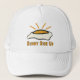 Oeuf frit avec poutres de soleil et le message "Sunny Side Up" ci-dessous. Comment aimez-vous vos oeufs au plat ?
