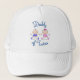 Casquette mignon avec "Papa des jumeaux" en texte bleu et garçon et fille mignonne en vêtements rose et bleu.