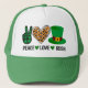 Peace Love Irish St Patrick's Day Trucker Hat Vous cherchez à encourager votre équipe, à promouvoir votre marque, ou tout simplement à garder le soleil hors de vos yeux? Nos casquettes personnalises remplissent toutes ces fonctions. Ajoutez vos logos, designs ou textes pour créer une casquette unique et originale.