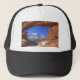 La neige fraîche recouvre Pikes Peak comme vue à travers un trou dans une formation de roche de grès