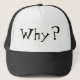'Pourquoi ? ' C'est un chapeau de camionneur noir et blanc cool avec la simple question "pourquoi ?" suivie d'un grand point d'interrogation. Parfois on veut juste savoir "pourquoi"...(On vous demandera probablement "pourquoi quoi ?" par tous ceux que vous voyez...)
