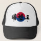 Tae Kwon-Do en calligraphie coréenne gros texte /anglais petit texte avec drapeau à l'arrière