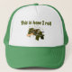 Ce casquette sur mesure pour les tourneurs de bois a une image cartoon d'un tour avec une main, gouge, et tournage de rondins, avec des copeaux de bois volants. Ça dit "C'est comme ça que je roule".