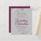 Diese preiswerten und freundlichen Einladungen für Hochzeiten sind die perfekte Wahl für Klasse, Stil und Schönheit zu einem günstigen Preis. Das Design umfasst lila, magentafarbene oder berry gefärbte Texte auf grauem Hintergrund mit verzierten silbernen Imitat-Folienkurven und Wirbel in den Ecken. Die Typografie beinhaltet extravagante Schriftzeichen für einen Stil, der gleichzeitig einfach und elegant ist. Ein wunderbarer Weg, um Ihre Freunde und Familie einzuladen, sich an Ihrem besonderen Tag zu erfreuen, ohne die Bank zu brechen.