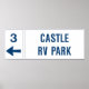Ein Schild für den RV Parkplatz auf einem Schloss. Dieses Design sieht wirklich effektiv aus auf diesem Poster