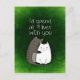 niedliches Design mit zwei Cartoon Katzen, die sich unter den Worten "Ich würde alle 9 Leben mit dir verbringen" umarmt, vor grünem Hintergrund
