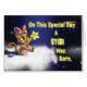 Ein niedliches Kätzchen hält ihren Spielzeugstar auf einer schwebenden Wolke am Nachthimmel. Eine schöne Karte für ein besonderes Mädchen an ihrem Tag der Feier.