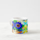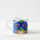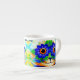 Espresso Cup mit Louis Wains Tiergemälde Cat Blume Eyes (1860-1939). Eine Regenbogenkatze grindet weithin. Blaue Blumen bedecken seine Augen. Ein wunderbares Geschenk für Katzenliebhaber und englische Kunst.