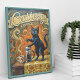 This unique illustration showcases a charming cat interacting with a French press, all set against a backdrop of delightful coffee art. The piece has been thoughtfully crafted using AI technology and enhanced with genuine textures for a captivating, realistic feel.