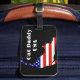 Gepäckanhänger mit Bild einer Katze und US-Flagge und die Worte, Cat Daddy USA, vor einem schwarzen Hintergrund.