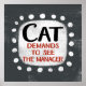 Un dessin animal typographique mignon et drôle qui dit "Chat exige de voir le directeur". Il présente du texte noir et rouge sur un rectangle blanc avec des points blancs amusants et amusants qui l'entourent, le tout sur un arrière - plan gris.
