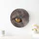 Gros plan du beau visage de chat gris avec un oeil clair et brumeux vous regardant. Les horloges sont disponibles en d'autres tailles dans notre magasin BsApparelPlus sur Zazzle. Découvrez des objets et des cadeaux similaires dans notre collection "The Lady Feline". Merci de faire des emplettes avec nous !