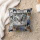 Katzengesicht, persönliches Foto Kissen. Füge das Foto deiner Katze in die Mitte dieses dekorativen Kissens. Ein Katzenaufdruck deckt beide Seiten ab.