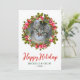 Diese wunderschöne Weihnachtskarte mit einem Foto Ihrer Katze oder Ihres Kindes in einem herrlichen Weihnachtskranz in Aquarellfarbe, Happy Holidays in einem modernen Schriftart mit Pinselschrift, Ihr Nachname und das Jahr wären perfekt für den Versand an Ihre Freunde und Familie. Jeder wird Liebe bekommen ein neues Foto von dir oder deiner Katze. Die Schriftart sind modern und sauber. Auf der Rückseite befindet sich ein floralfarbener, korrespondierender Blumenstrauß mit Heiligen und Kiefern. Um diese Karte zu Ihrem eigenen zu machen, wählen Sie einfach diese Vorlage personalisieren, laden Sie Ihr Lieblings-Foto hoch und geben Sie Ihren Namen und das Jahr ein. Es ist super einfach! In nur wenigen Sekunden werden Sie Ihre einzigartigen und fabelhaften Foto-Urlaubskarten sehen.