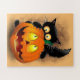 Cat Fun Halloween Charakter beißt einen Kürbis