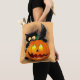 Cat Fun Halloween Charakter beißt einen Kürbis Tasche