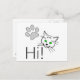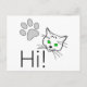 Hi Text und Zeichnungen einer Katze Gesicht mit grünen Augen und einer Pfote. Katzen grüßen. Horizontal formatierte Produkte und Geschenke für Spaß und Lachen.