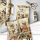 Niedliche Vintage Musterverpackungspapier mit einem Katzenorchester, das ein Happy-Geburtstagslied singt (oder für jeden anderen Anlass anpassbar)