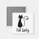 Kennen Sie eine Katzenfrau, die damit völlig in Ordnung ist? Dieser Magnet ist für sie! Eine moderne, schwarze Katze mit roten Herzaugen und ein kleines rotes Herz inmitten des Schwanzes.