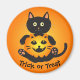Halloween Katze, die Jack-o'-Lantern hält, gekrümmt wie eine Katze, um Trick oder Leckerbissen zu spielen. Niedliches und humorvolles Halloween-Geschenk für Katzenliebhaber.