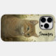 Conception de Chat unique créée à partir d'oeuvres d'art. Il dispose d'un chat Tabby Cat-Orange Gingembre Cute assis dans un jardin fleuri. Vous pouvez facilement personnaliser ce coque iphone en ajoutant votre propre nom.