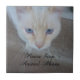 Eine Keramik mit einem Foto einer weißen Katze, die von einem Autofahrer getötet wurde, der sie absichtlich hochfuhr und traf. Bitte spucken und neuter Tiere, um grausame Todesfälle wie diesen zu verhindern.