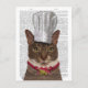 Cat Koch von FabFunky. Füttert eine Katze mit einem Koch Hut. Der Hals ist mit Fischen geschmückt. | 191382D