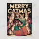 Niedliche X-Mas Postkarte mit Katzen, die mit Weihnachtsgeschenken spielen, Vintag nostalgisches Design.
