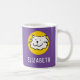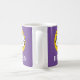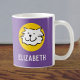 Cat Lover oder Cat Besitzer Tasse. Happy Cartoon Katzengesicht in Schwarz, Gelb und lila. Fügen Sie den Namen Ihrer Wahl hinzu. Tolle Katzenbesitzerin Geschenk.