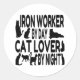 Dieses bezaubernde Textdesign mit der Phrase "Iron Worker by Day Cat Lover by Night" und niedlichen Katzenprofilen ist perfekt für jeden Eisenerz, der Katzen Liebe.