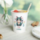 Niedliche kawaii aquamarine Katze sitzend zwischen zwei Blume Vasen und Herz auf jeder Seite mit Text liest Cat Lover. Das ist ein großartiges Geschenk für Katzenliebhaber.