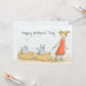 Alles Gute zum Muttertag. Für die größte Katzenjunges-Mama der Welt. Alle Texte können individuell angepasst werden. Ein niedliches kleines Mädchen in einem roten Kleid, das zwei graue Katzen mit blauen Augen in Kisten geht, indem es sie mit einer Kette zieht. Einzigartiger Katzenweg. Sweet Cat Cartoon Illustration gezeichnet von Donna Leger.