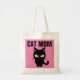 CAT-MAMA-TASCHE. NIEDLICHE SCHWARZE KATZE UND EIN PINKHINTERGRUND
