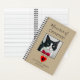 This soothing memorial cat journal will provide a welcome place for you to share your thoughts about your sweet kitty. The journal features several choices for paper inside. On the outside you will find a neutral khaki color on the front and the back. The words, "Memories of (Name)" are featured right above your own photo. The dates, a pawprint inside a heart and the words, "You left forever pawprints on my heart!" round out the front design. The reverse side features a black pawprint inside a red heart. Copyright Peaches the Tuxedo Cat