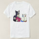 Eine spielerische Katze hält einen roten Bowlingball und sitzt neben zwei überraschten Bowling-Buttonen mit blauen und roten Streifen.